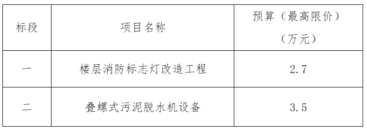 二、项目名称:楼层消防标志灯改造工程及叠螺式污泥脱水机设备
