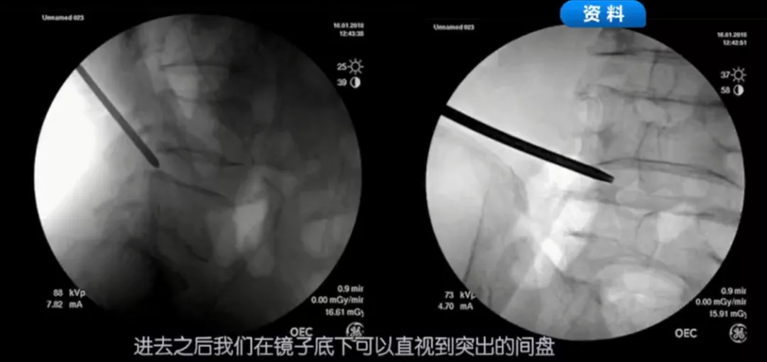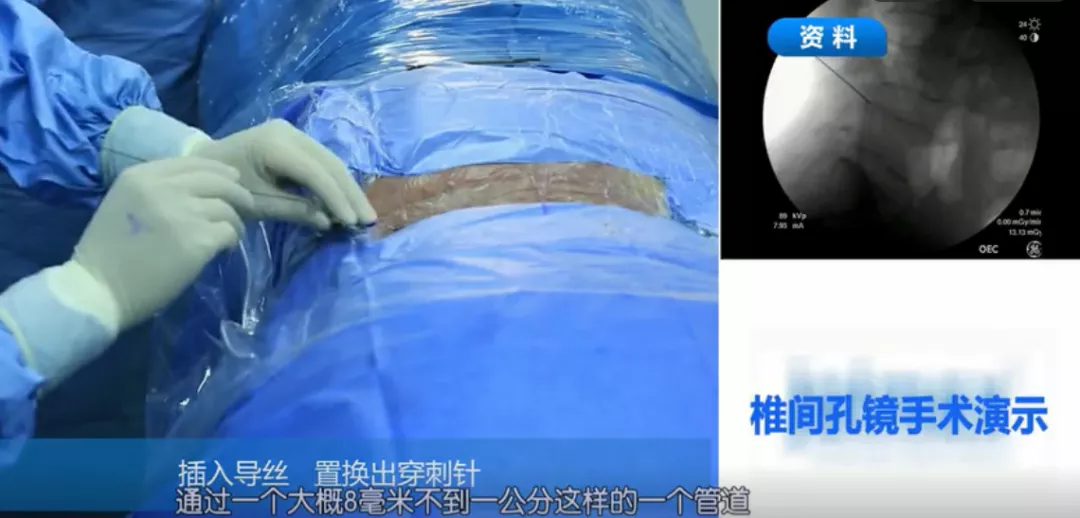 椎间孔镜是最微创的一种方式,通过一个大概8毫米到一厘米左右的一个管道,通过内窥镜,就可以直视到突出的间盘、还可以看到神经,神经受压了就会出现水肿。