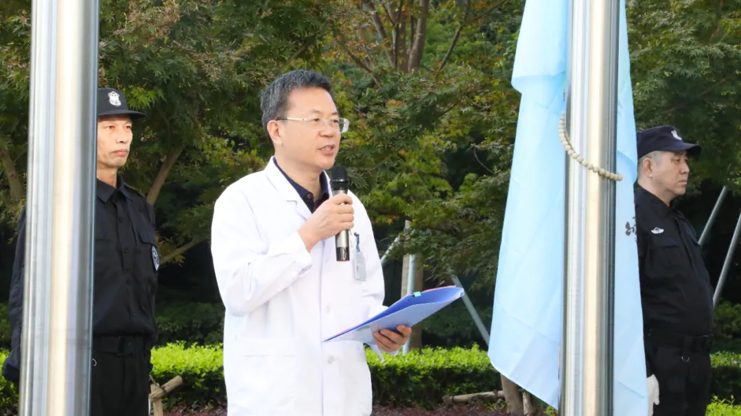 升国旗礼毕,该院党委副书记、副院长王秋生在国旗下发言。他说,今天是烈士纪念日,我们永远不要忘记无数先烈为了新中国,为了美好生活前赴后继、奋勇献身。我们要心怀赤诚,不忘国耻,传承革命精神、缅怀革命先烈、铭记革命历史。今年也是中国共产党建党100周年,一百年沧桑巨变,一百年风雨征程,没有共产党就没有新中国!让我们弘扬正气,积聚能量,团结创新,共谋医院新发展;让我们展望未来,坚定信心,凝聚共识,明晰医院发展思路!