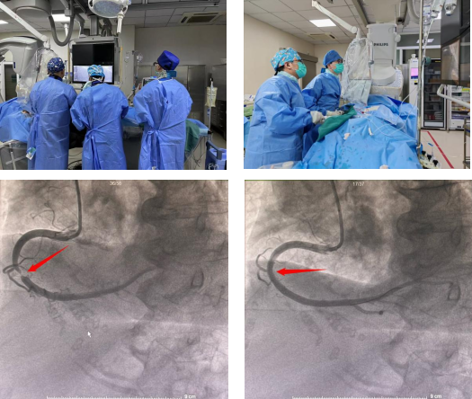 经过详细的术前准备,心内科团队拟决定为老人实施“冠状动脉造影+支架植入术”。造影显示,毛奶奶的右冠状动脉中段已次全闭塞,情况比预想更为复杂。