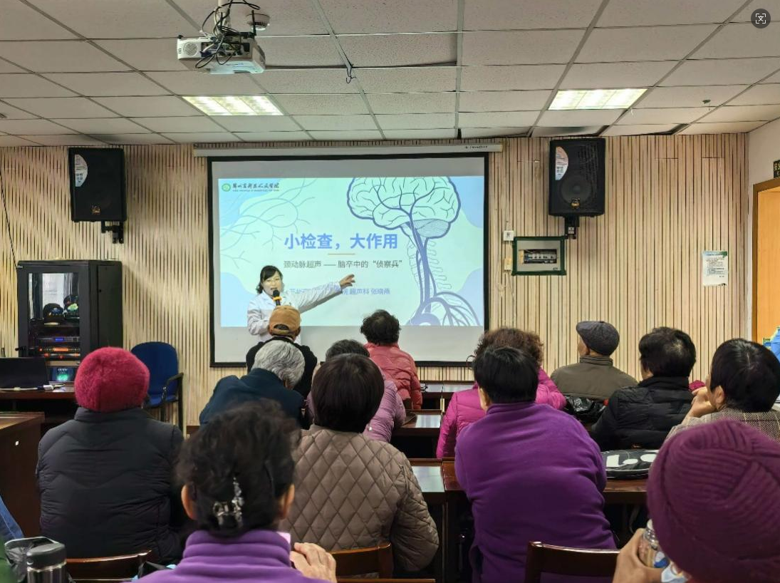 活动现场,张主任先从脑卒中讲起。她说,脑卒中俗称 “中风”,是脑部血管突然堵塞或破裂,导致脑组织缺血缺氧、功能受损的急性疾病,具有高发病率、高致残率、高死亡率等特点。张主任通俗地讲解道:颈动脉是给大脑供血的 “主干道”,斑块就像水管里的水垢,日积月累会让血管变窄、堵塞,一旦脱落随血液冲进大脑,就会引发脑梗,导致偏瘫、失语甚至危及生命,给家庭和个人带来沉重负担。
