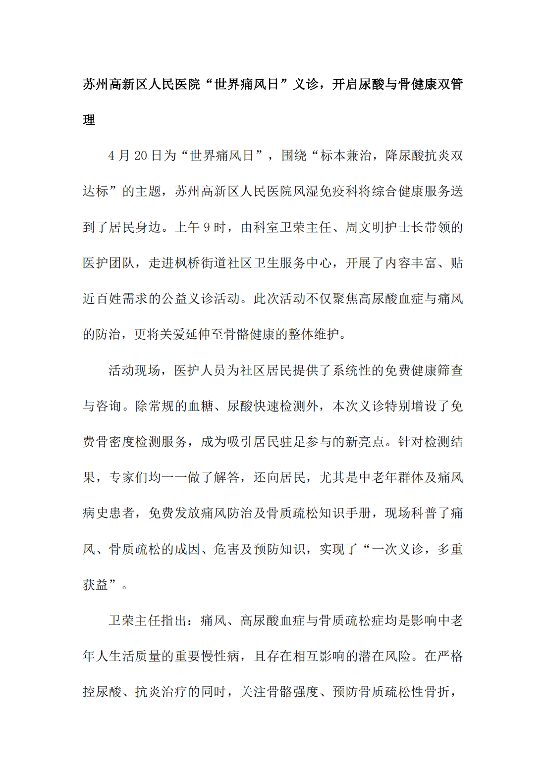 苏州高新区人民医院“世界痛风日”义诊,开启尿酸与骨健康双管 理
