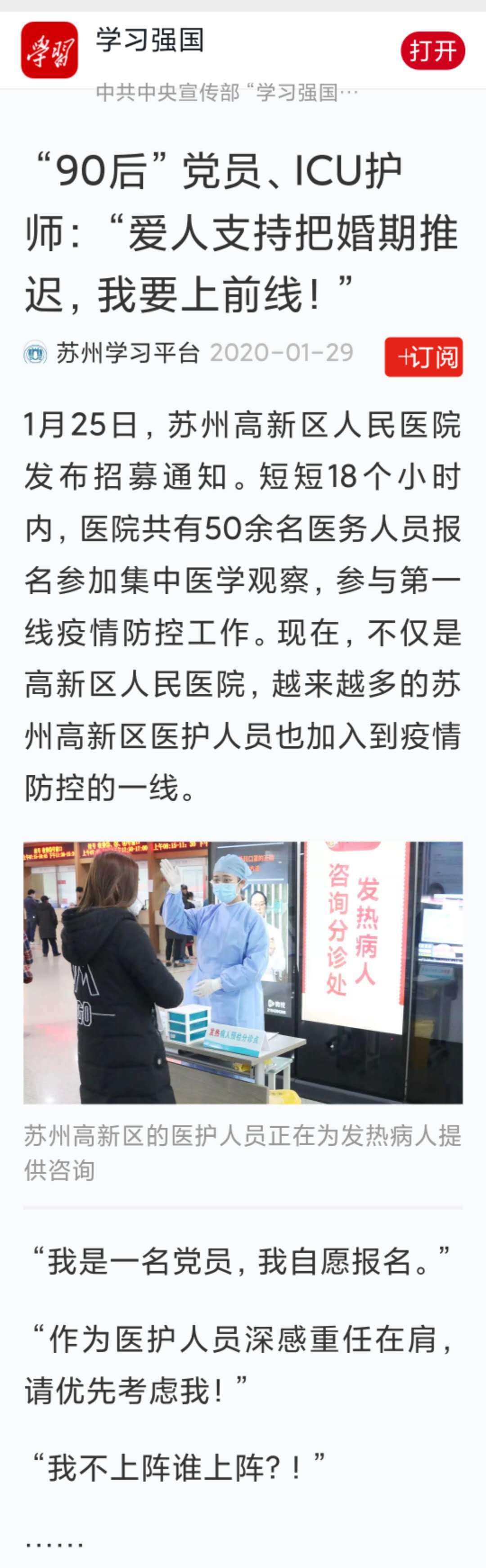 学习强国:“90后”党员、ICU护师:“爱人支持把婚期推迟,我要上前线!”