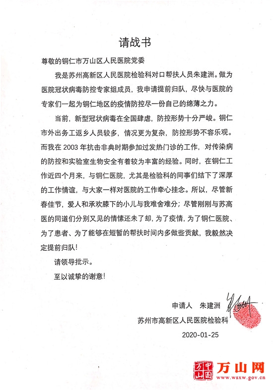 汪益和朱建洲的“请战书”