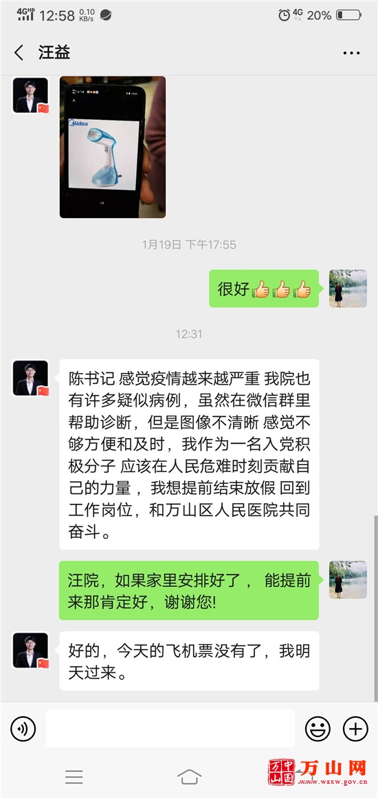“我们非常感谢两位老师,他们本来是要春节后才回来的,但在了解情况后,主动请战,不远千里回到万山投入工作,真的让我们很感动。”万山区人民医院党委书记陈黔华如是说。