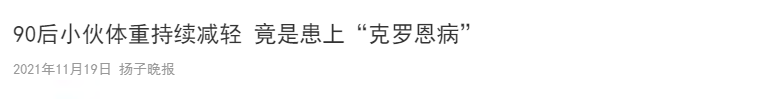 扬子晚报:90后小伙子体重持续减轻 竟是患上“克罗恩病”