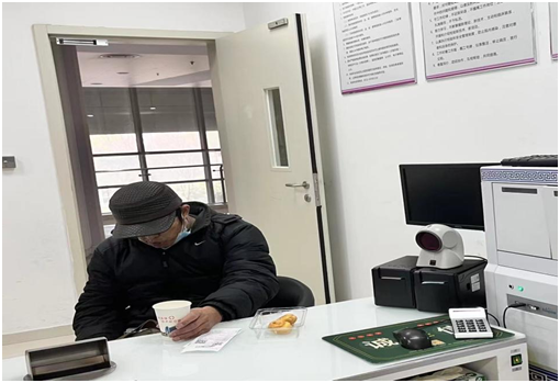 我立即嘱咐阿叔先坐在一旁的椅子上,再取来血压计给他测量,结果显示血压在正常范围内。便问他是否有糖果、饼干等食物在身边,姚阿叔有些无助地摇了摇头说:“刚挂了门诊号过来,身边也没有亲戚朋友照顾,什么东西也没带。”“没事,阿叔,我们有蛋糕,你等一下。”值班的姚菲、王玉凤和倪远芳护士了解情况后,立刻转身回到办公室,从值班“储备粮”里拿出了盒小蛋糕,顺便倒了杯水给阿叔润润喉。等半个小时后,姚阿叔恢复了精神体力,大家这才放下了心来,顺顺利利地把血给采集好,嘱咐阿叔三根手指按压十分钟,姚阿叔一再向我们表示了感谢。