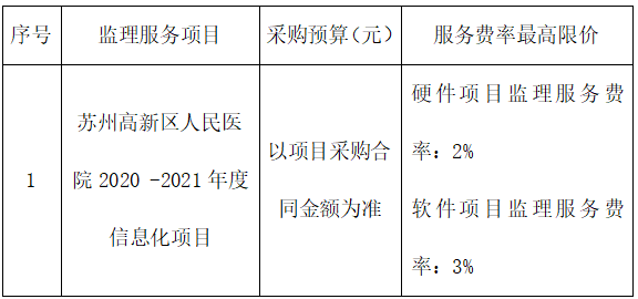 苏州高新区人民医院 2021年度信息化项目监理供应商 比选邀请函