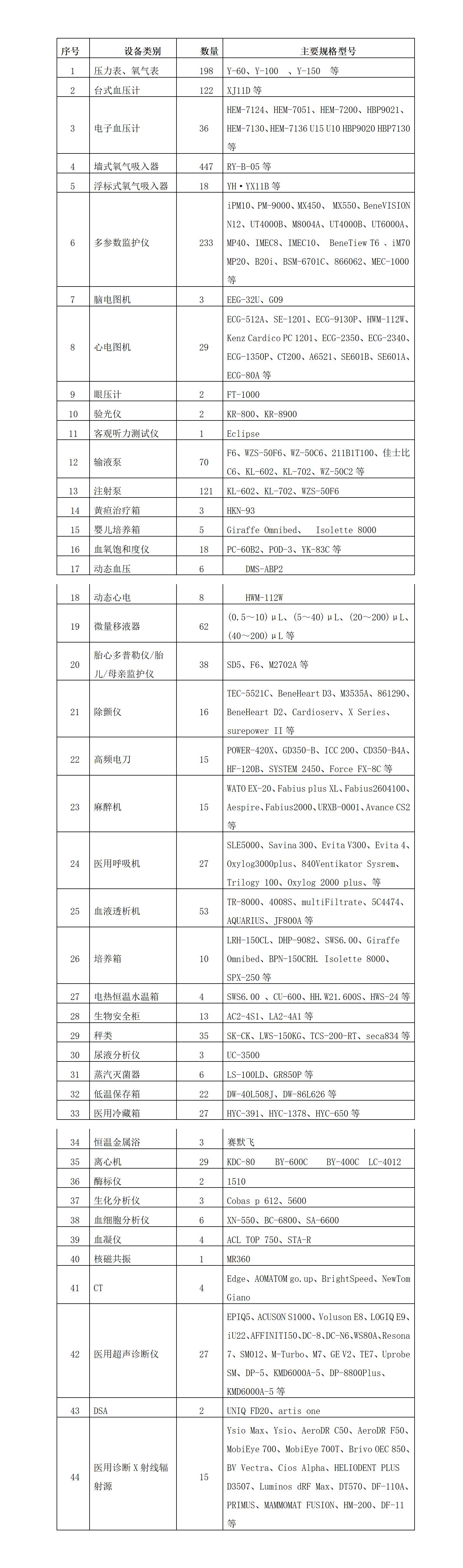 医疗器械清单(另:实际明细以现场设备为准)