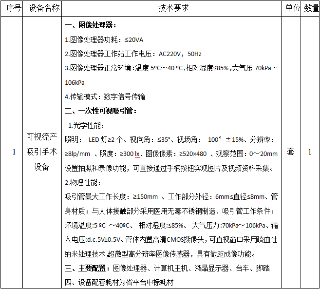 苏州高新区人民医院拟对医疗设备“可视流产吸引手术设备”进行院内招标,欢迎符合招标采购文件资格条件的各供应商前来报名参加投标。