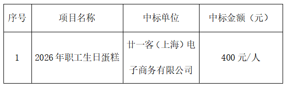 我单位于2025年12月10日对苏州高新区人民医院工会委员会2026年职工生日蛋糕项目进行了公开采购招标。现就本次采购的中标结果公告如下: