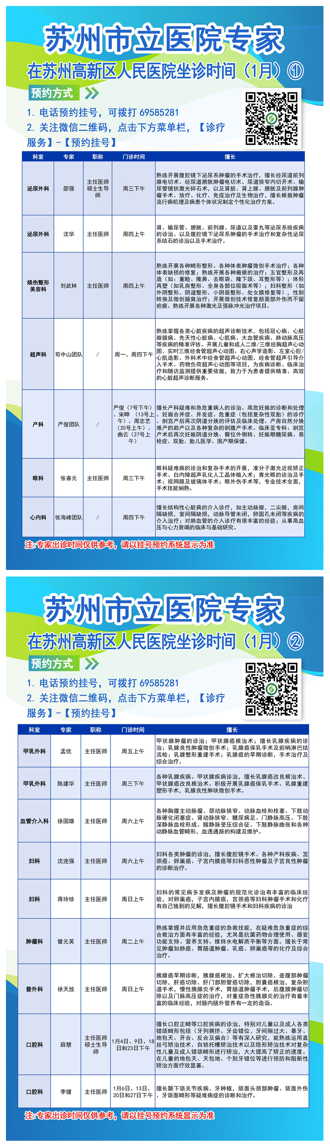 市立医院出诊表